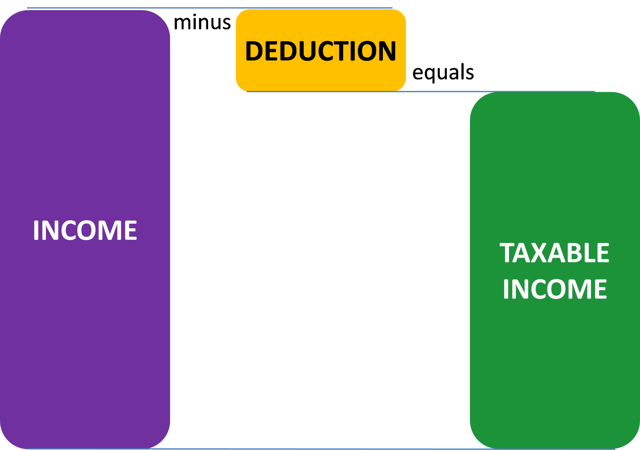 We’ve talked about the many types of income you might have, and how the IRS wants you to declare all of it. Good news though, Congress has decided that we don’t have to pay tax on every dollar of income. We have some “adjustments” that flow into line 10 on Form 1040, and then “deductions” that flow into lines 12 and 13. They all reduce the $ of income on which you have to pay tax. Like this: