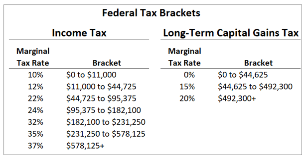 First consider the difference in tax rates for ordinary income vs capital gains (these are 2023 $ amounts):