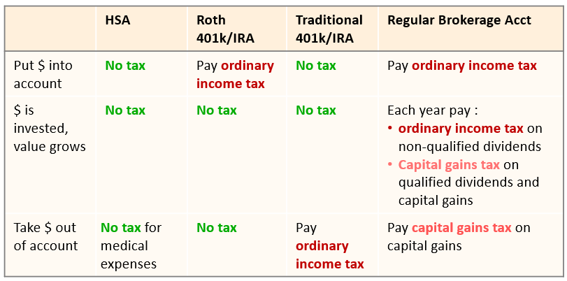 Now consider this summary of taxes for different types of investment accounts: