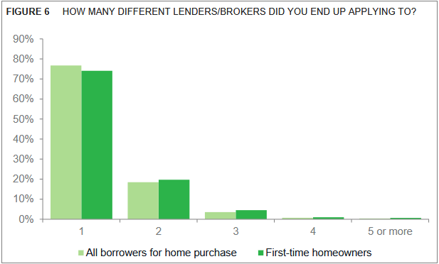 This says that more than 7 in 10 people get an actual price quote for a mortgage from only one place, and this is true for both first-time and experienced home buyers. We are talking about the largest financial transaction in people’s lives and they aren’t shopping around.