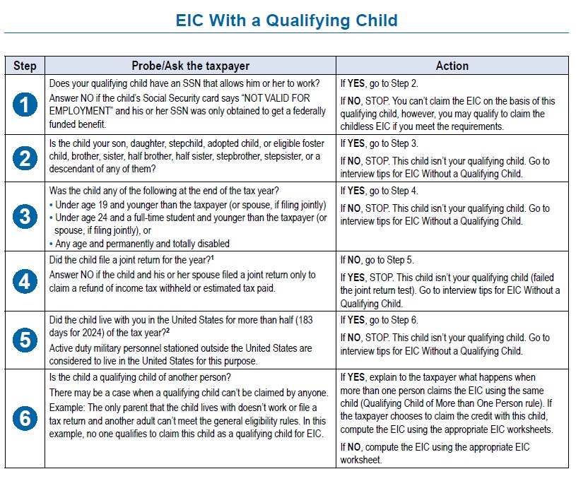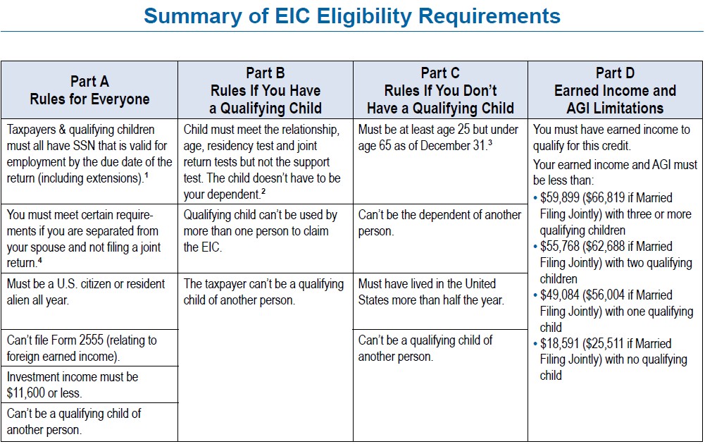 IRS Publication 4012, summarizes EITC eligibility requirements: