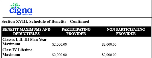 Since I’m not going to need orthodontics, I can see that all the dental services I’ll need, if they are covered, will fall under Class I, II, or III, and therefore I’ll have $2k to work with for the year. Now I’ve connected the annual max in the employer document to the actual policy document that governs things.