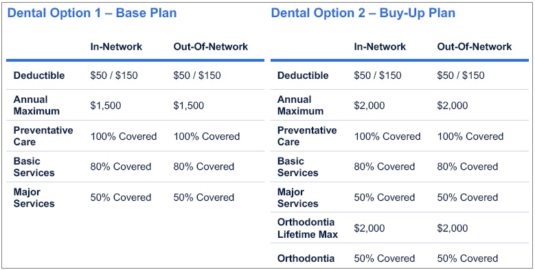 Last fall during open enrollment, we reviewed the benefits presentation from my spouse’s HR department. Here is how it summarizes the two available dental plans – we selected option 2 with the $2,000 annual max:
